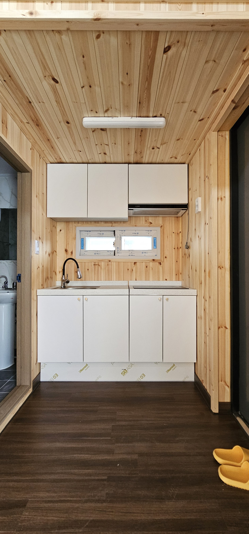 벽 천장 : 판넬 100T + 내장스치로폼 100T + 메탈사이딩 (18T) + 편백루바 마감