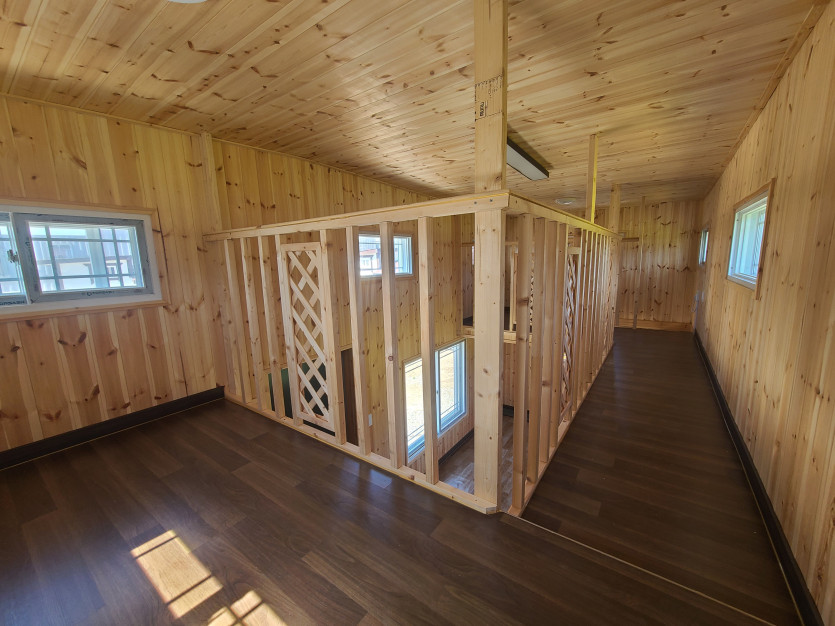벽 천장 : 판넬 100T + 내장스치로폼 100T + 메탈사이딩 (18T) + 편백루바 마감